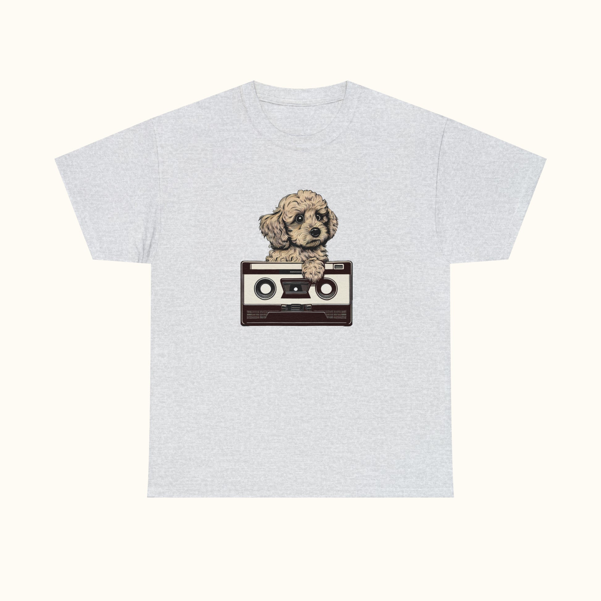 Rule your day in this t-shirt made from cotton-slub fabric, offering a smooth and comfortable touch. It showcases an oversized graphic of a goldendoodle playing with a big vintage casette tape in front.